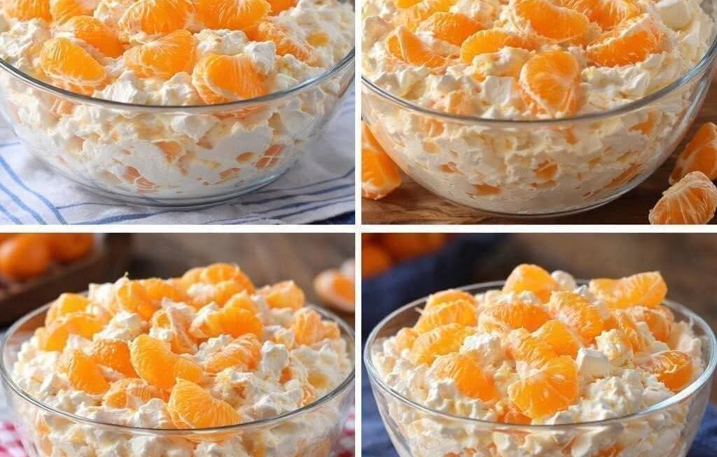 Ingredients:QuantityOrange Jell-O 1 boxInstant Vanilla Pudding 1 boxBoiling Water 1 cupCold Water 1/2 cupCool Whip 1 package (8 oz.)Mandarin Oranges (drained) 1 can (14 oz.)Mini Marshmallows 1 cupInstructions:Making the Gelatin Mixture (5 minutes):In a large bowl, combine the orange Jell-O powder and instant vanilla pudding powder.Pour in the boiling water and whisk it together until the gelatin and pudding are completely dissolved.Then, stir in the cold water until everything is well combined.Folding in the Cream (2 minutes):Gently fold the Cool Whip into the gelatin mixture until you have a smooth and creamy consistency.Adding the Fruit and Marshmallows (2 minutes):Carefully fold in the drained mandarin oranges and mini marshmallows, making sure they are evenly distributed throughout the salad.Chilling and Serving (2+ hours):Pour the Orange Dreamsicle Salad mixture into a serving dish or individual dessert cups.Refrigerate the salad for at least 2 hours, or until it’s completely set.Serve chilled and enjoy the refreshing taste!Enjoy!