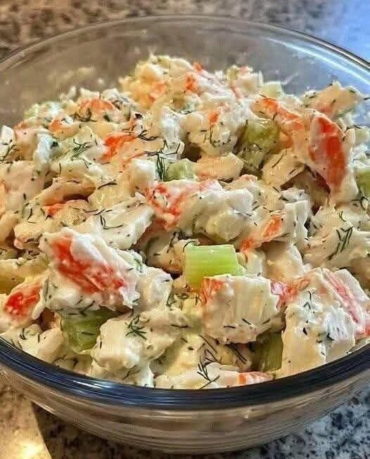 This seafood salad is creamy, fresh, and packed with flavor. Perfect for sandwiches, lettuce wraps, crackers, or served chilled as a light lunch. It’s simple to make but tastes like something from a seaside café.INGREDIENTSFor the Seafood1 lb imitation crab meat or cooked real crab, chopped1/2 lb cooked shrimp, peeled, deveined, and chopped1/2 cup celery, very finely diced1/4 cup red onion, very finely minced1/4 cup sweet pickle relish1 tablespoon fresh parsley, choppedFor the Dressing3/4 cup mayonnaise1 tablespoon lemon juice (freshly squeezed)1 teaspoon Dijon mustard1/2 teaspoon Old Bay seasoning1/4 teaspoon paprikaSalt to tasteBlack pepper to tasteOptional Add-Ins1 tablespoon fresh dill1 teaspoon hot sauce1/4 cup diced cucumber1 boiled egg, finely choppedINSTRUCTIONSStep 1 – Prepare the SeafoodIf using imitation crab, chop into bite-size pieces.If using real crab, carefully check for shell fragments and gently flake it.Chop shrimp into small chunks.Step 2 – Prepare the VegetablesFinely dice celery and red onion so they blend smoothly into the salad.Chop parsley.Step 3 – Make the DressingIn a large bowl, combine mayonnaise, lemon juice, Dijon mustard, Old Bay, paprika, salt, and black pepper.Whisk until smooth and creamy.Step 4 – Combine EverythingAdd the seafood, celery, onion, relish, and parsley to the bowl.Gently fold everything together until evenly coated.Taste and adjust seasoning if needed.Step 5 – ChillCover and refrigerate for at least 1 hour before serving.This allows the flavors to blend and makes the salad extra delicious.SERVING IDEASServe on toasted sandwich rollsStuff into croissantsSpoon into lettuce cupsServe with crackersAdd to a bed of mixed greensFill avocado halvesSTORAGEStore in an airtight container in the refrigerator for up to 2 days.Do not leave at room temperature for long periods.TIPS FOR BEST RESULTSUse small diced vegetables for better textureChill before serving for best flavorAdd extra lemon juice for a brighter tasteUse high-quality mayonnaise for a rich, creamy resultThis seafood salad is creamy, slightly tangy, lightly seasoned, and incredibly satisfying. Perfect for meal prep, gatherings, or an easy no-cook dinner.