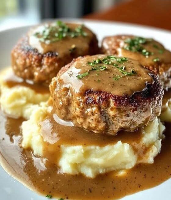 - Serving Suggestions: Serve Salisbury steak patties and gravy over mashed potatoes, rice, or with a side of steamed vegetables for a complete meal.